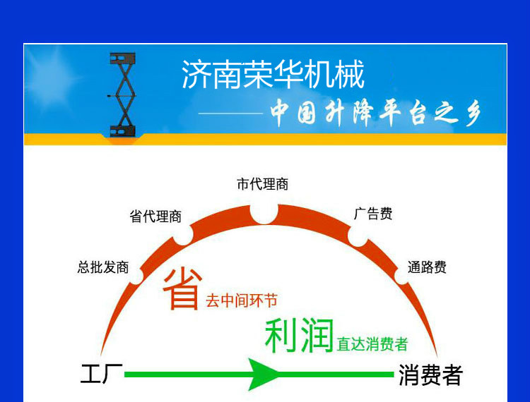 •      濟(jì)南榮華機(jī)械設(shè)備有限公司是一家集研發(fā)、設(shè)計(jì)、和銷(xiāo)售于一體的制造型企業(yè),專(zhuān)業(yè)制造升降平臺(tái)、液壓升降機(jī)械、鋁合金升降平臺(tái),登車(chē)橋等,曲臂式升降機(jī),高空作業(yè)平臺(tái),技術(shù)力量雄厚,工藝先進(jìn)合理,檢測(cè)手段齊全。