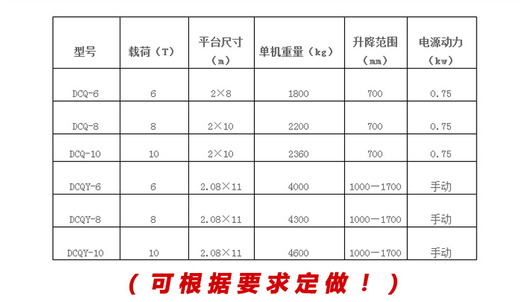 登車(chē)橋參數(shù):